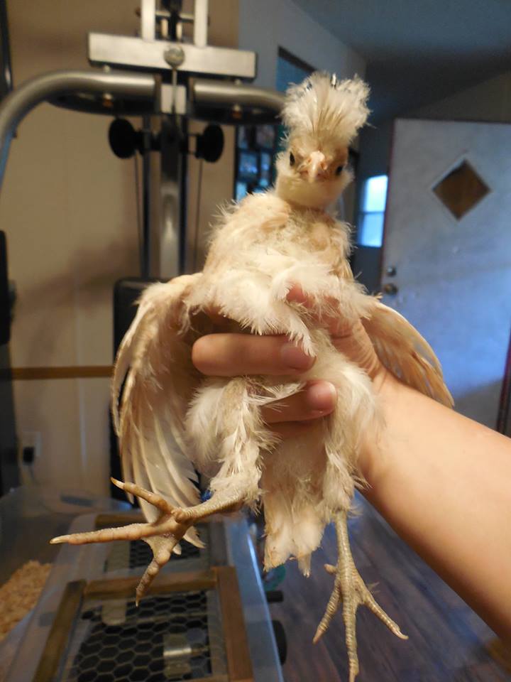 Yes, I took a chick (Buff Laced Polish) to the vet to see what's going on with her leg and what we can do to fix it. As you can see from the following picture, her leg doesn't sit right. I thought it was because she had a slipped tendon. Doc says otherwise.